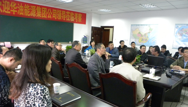 为加强页岩气开发与合作,2014年10月15日上午,华油能源集团有限公司研发中心主任赵宝顺等一行,在华油西南分公司领导陪同下莅临公司考察,双方就进一步加强页岩气开发,拟建立长期友好合作关系等方面事宜进行了认真的讨论。(图为:客人与公司领导及专家座谈交流现场)